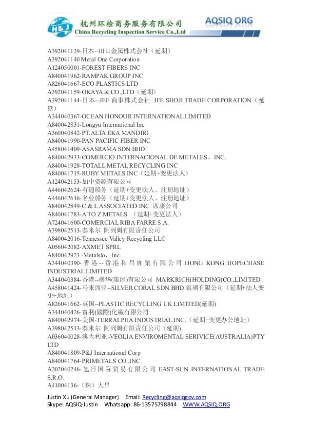 进口废物原料境外供货企业延续申请合格名单序号证书号企业名称国